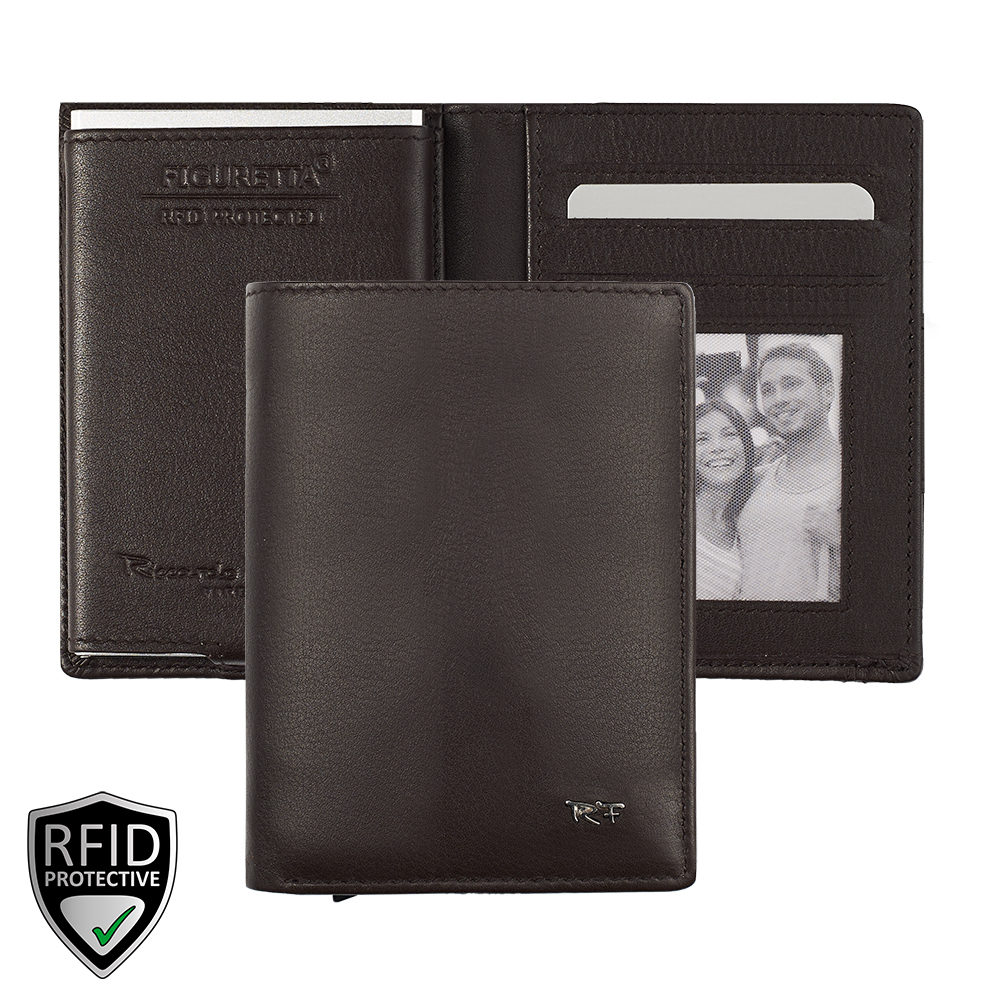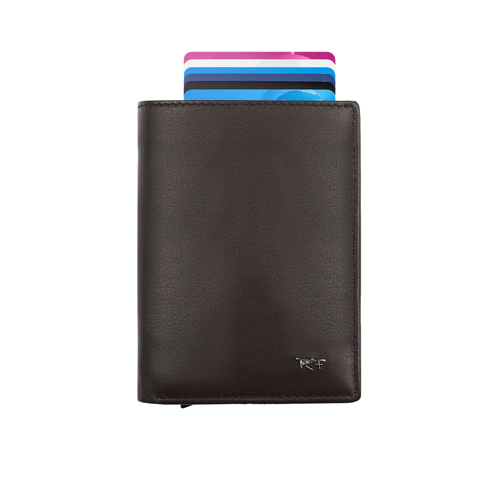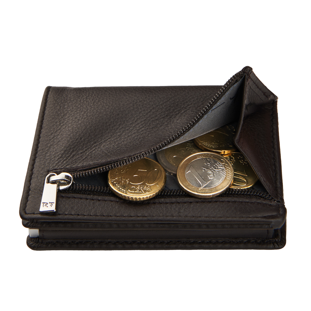 1 RFID Hacker Protection, 1 Metal Cardprotector – für 6 Kreditkarten, 2 Kreditkartenfächer, 1 Notenfach, 4 Kreditkartenfächer im Notenfach, 1 Fotofach, 1 Münzfach mit RV auf der Rückseite, 2 Steckfächer