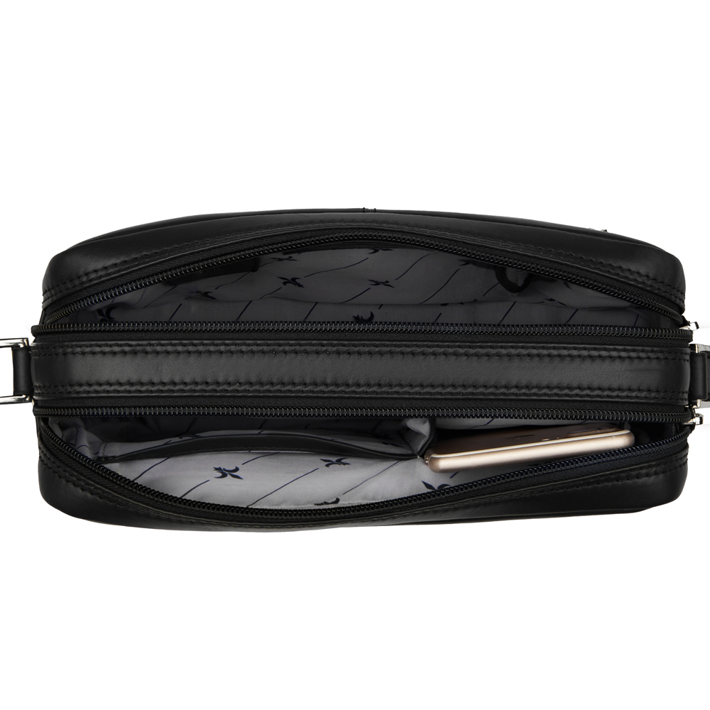 1 Trageriemen verstellbar, 2 Hauptfächer, 1 LED-Licht Halterung, 1 Kugelschreiber-Schlaufe, elastisch, 1 Reissverschlussfach, 1 Reissverschlussfach a. d. Vorderseite, 1 Reissverschlußfach a. d. Rückseite