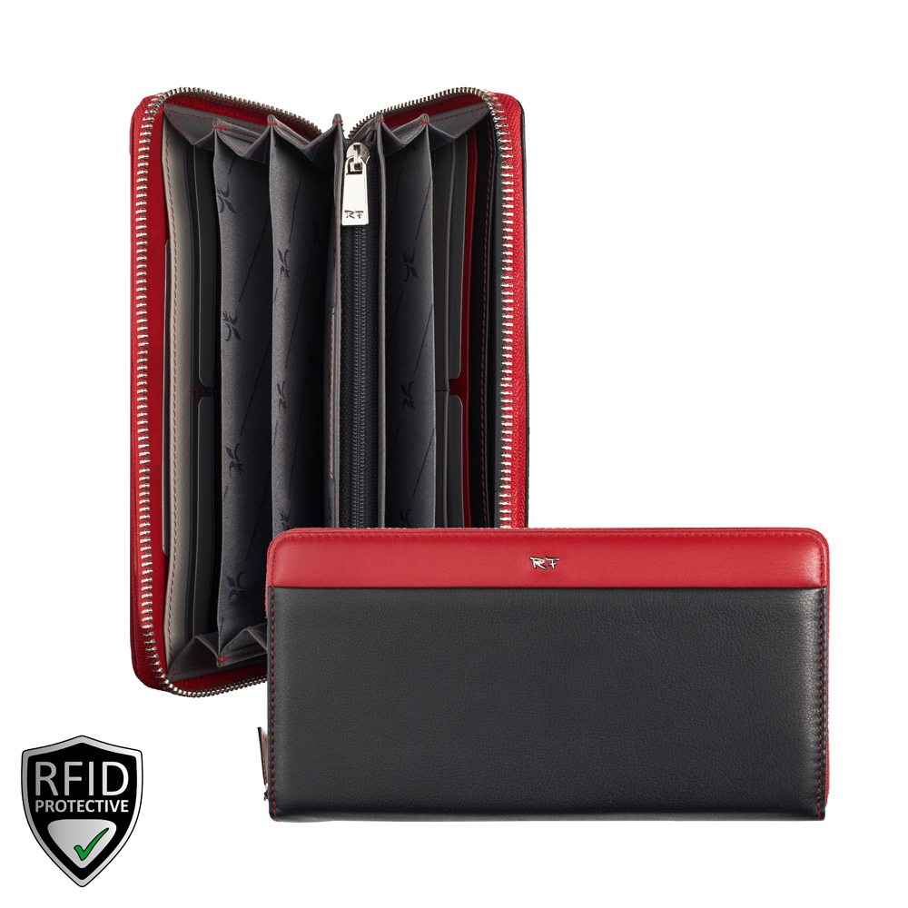 1 RFID Hacker Protection, 14 Kreditkartenfächer, 1 Fotofach, 1 Münzfach mit Reissverschluss, 5 Notenfächer, 2 Steckfächer, 1 Steckfach aussen