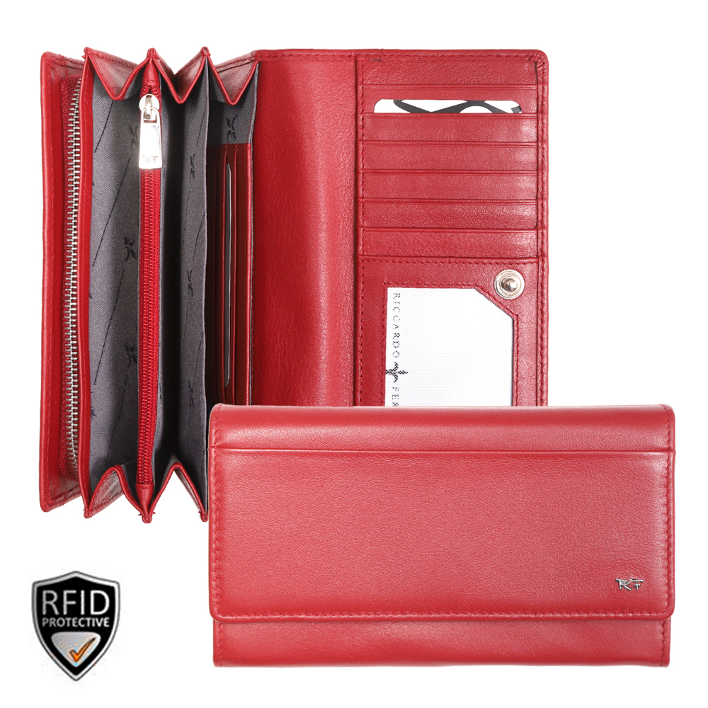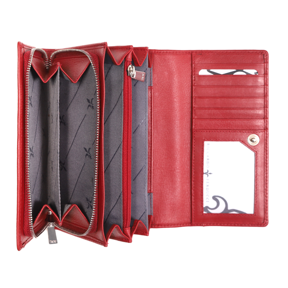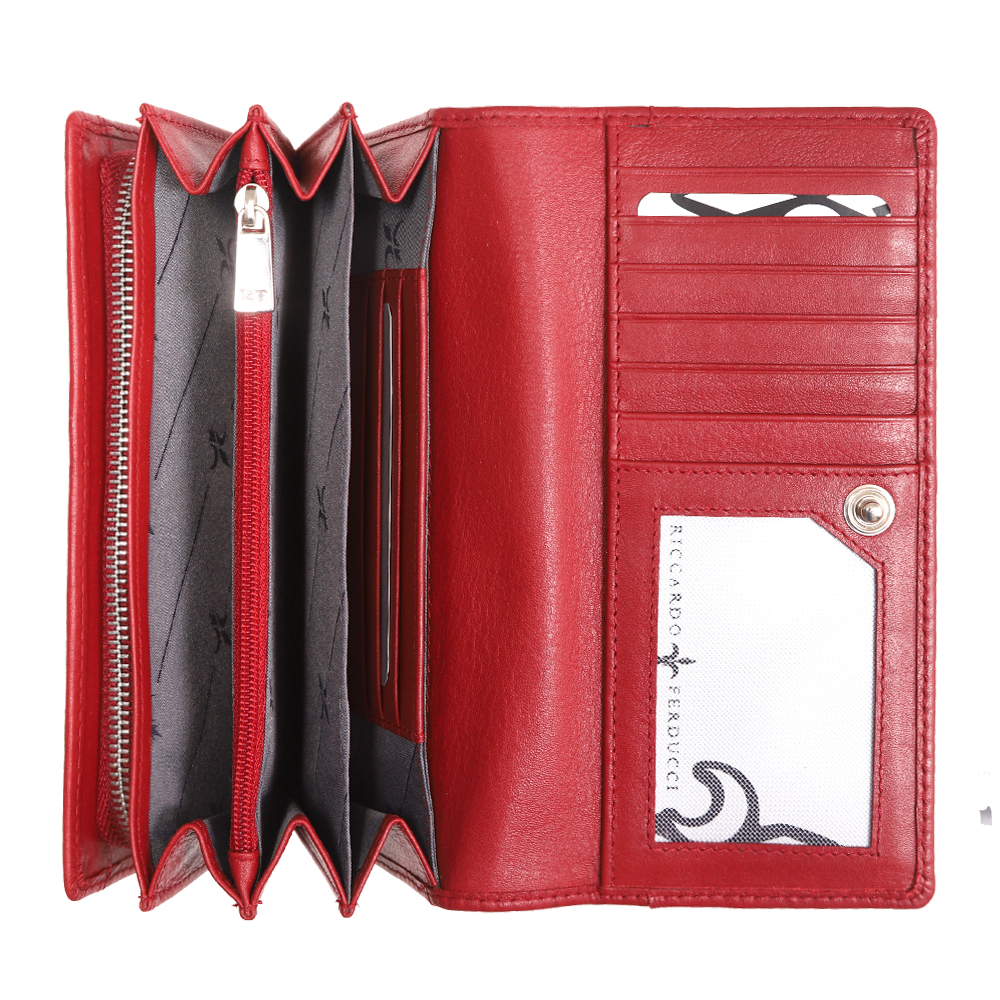 1 RFID Hacker Protection, 6 Kreditkartenfächer, 3 Kreditkartenfächer im Notenfach, 1 Fotofach, 1 Münzfach, 3 Notenfächer, 2 Steckfächer, 1 Reissverschlussfach, 1 Steckfach aussen