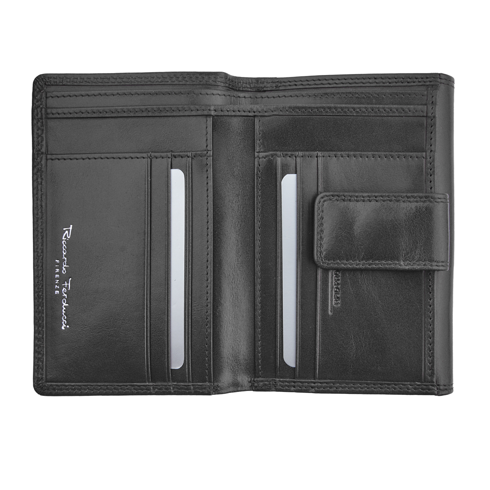 1 RFID Hacker Protection, 6 Kreditkartenfächer, 6 Steckfächer, 1 Münzfach, geteilt, 1 Fach für Einkaufswagen-Jeton, 1 Fach für den Schlüssel, 2 Notenfächer, 1 Sicherheitsverschl. mit Druckknopf, außen