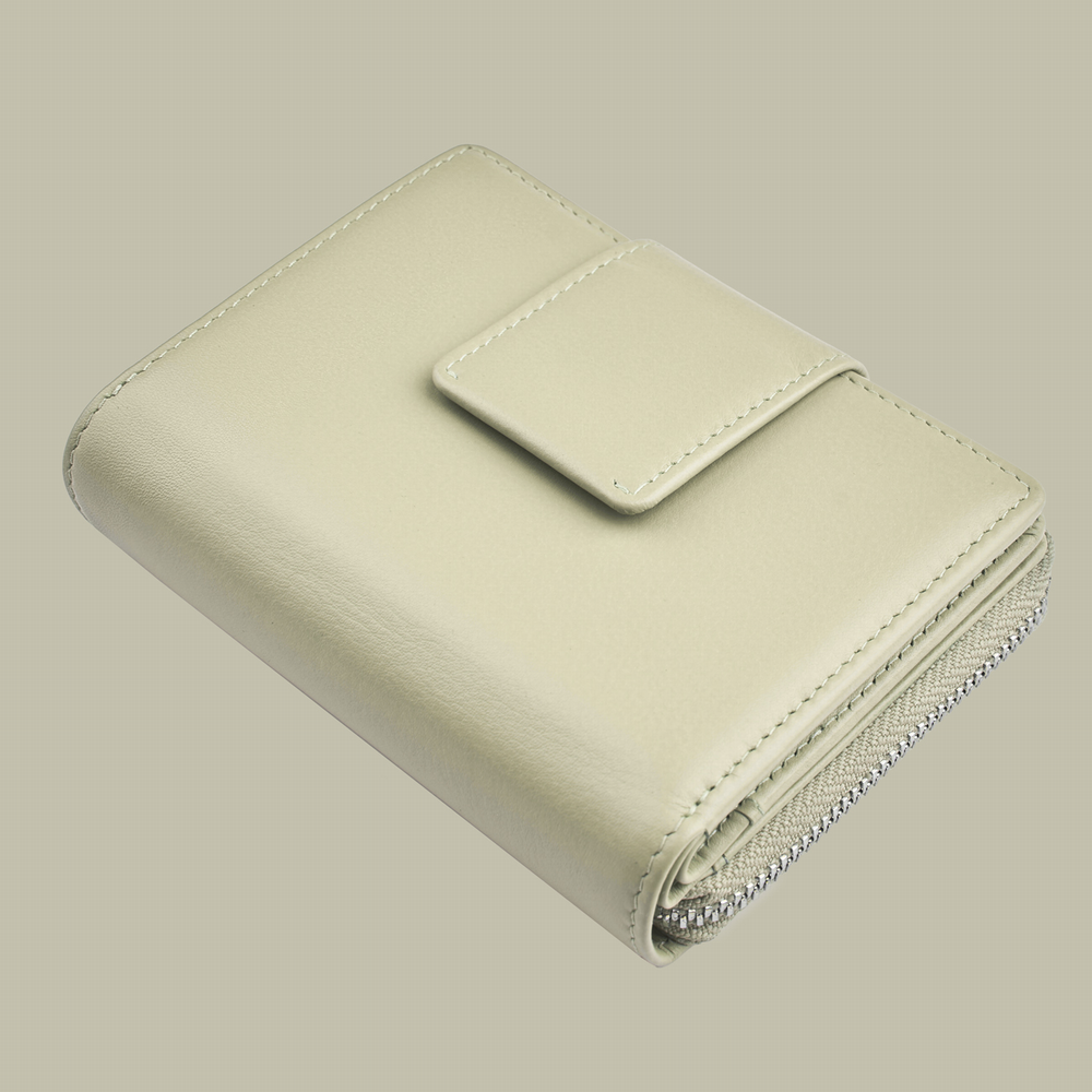 1 RFID Hacker Protection, 12 Kreditkartenfächer, 1 Fotofach, 1 Fach für Einkaufswagen-Jeton, 1 Münze für den Einkaufswagen, 1 Schlüsselfach, 1 Notenfach, 6 Steckfächer, 1 Sicherheitsverschl. mit Druckknopf, außen