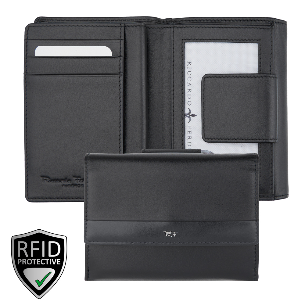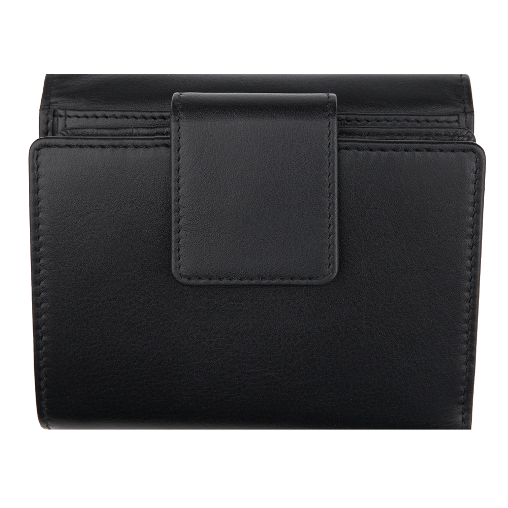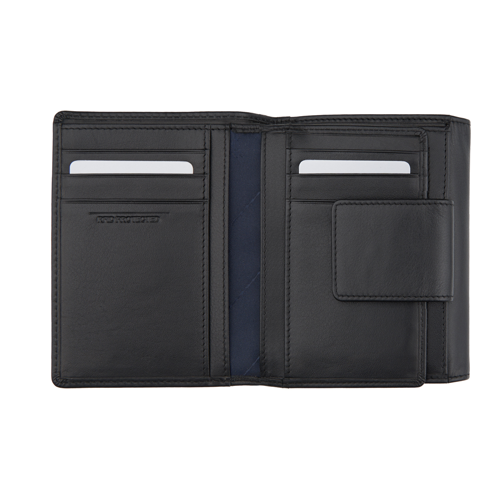 1 RFID Hacker Protection, 12 Kreditkartenfächer, 1 Fotofach, 1 Münzfach geteilt, mit RV, 1 Notenfach, 6 Steckfächer, 1 Sicherheitsverschl. mit Druckknopf, außen, 1 Steckfach aussen
