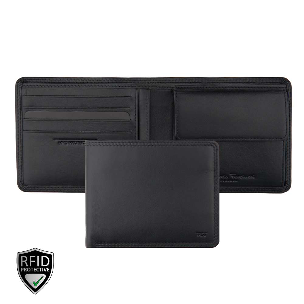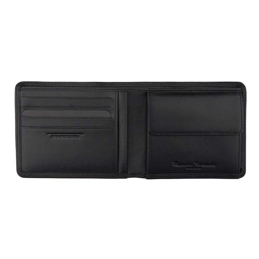 1 RFID Hacker Protection, 4 Kreditkartenfächer, 6 Kreditkartenfächer im Notenfach, 3 Steckfächer, 1 Münzfach, 2 Notenfächer