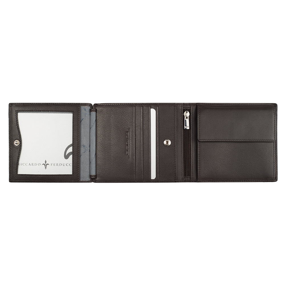 1 RFID Hacker Protection, 9 Kreditkartenfächer, 1 Münzfach, 1 Fach für Einkaufswagen-Jeton, 2 Notenfächer, 1 Klarsichtfach, 2 Steckfächer, 1 Reissverschlussfach