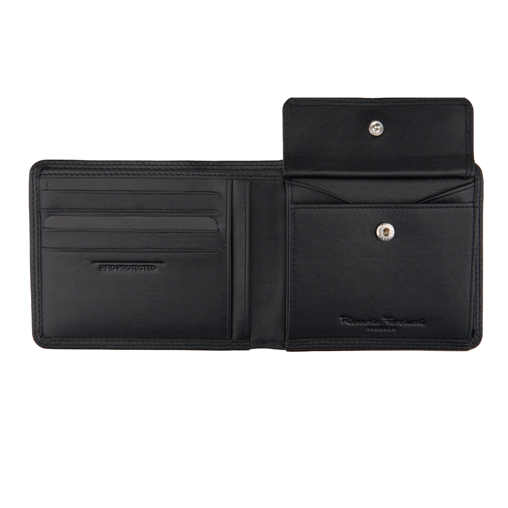 1 RFID Hacker Protection, 4 Kreditkartenfächer, 6 Kreditkartenfächer im Notenfach, 3 Steckfächer, 1 Münzfach, 2 Notenfächer