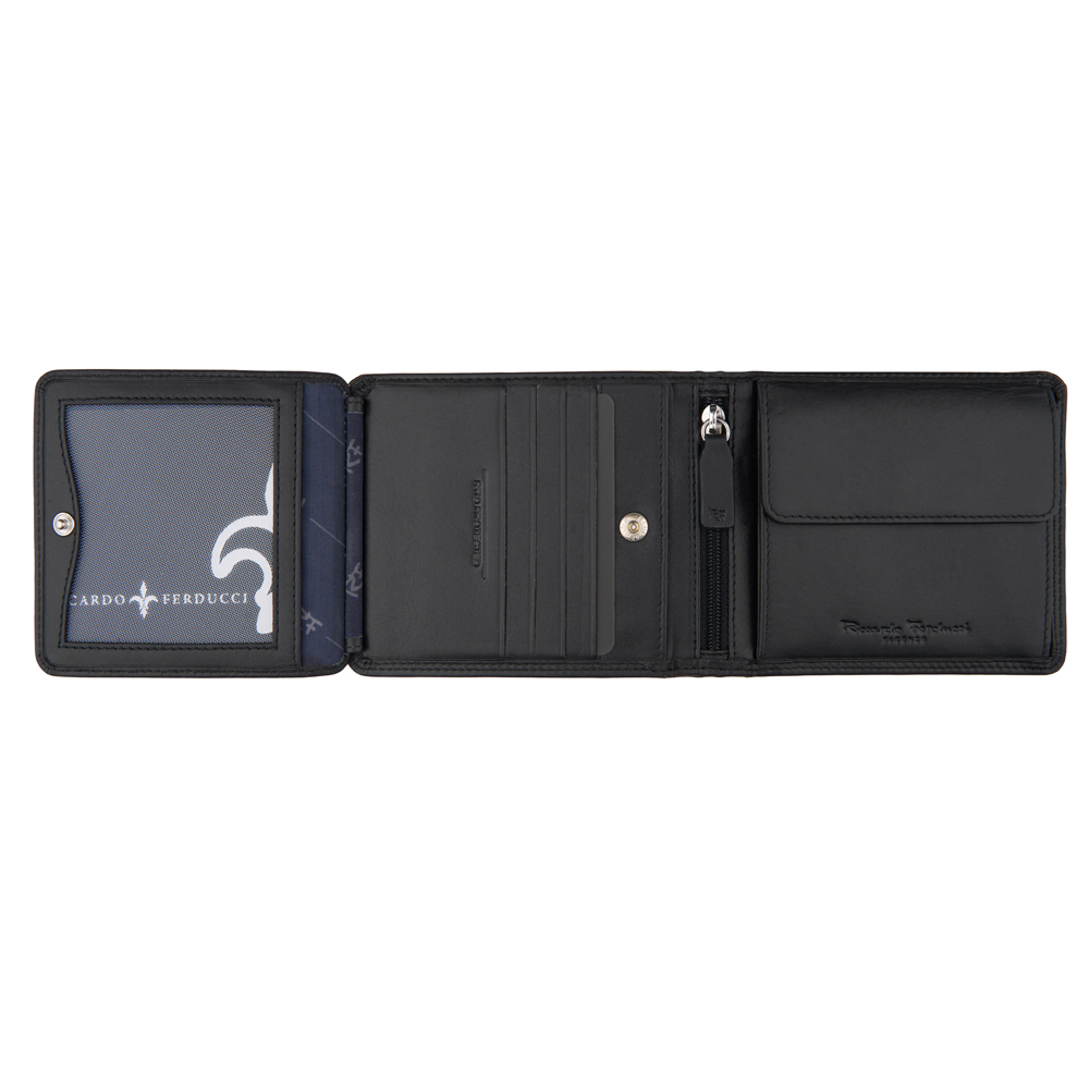 1 RFID Hacker Protection, 9 Kreditkartenfächer, 2 Steckfächer, 1 Fotofach, 1 Münzfach, 2 Notenfächer, 1 Reissverschlussfach