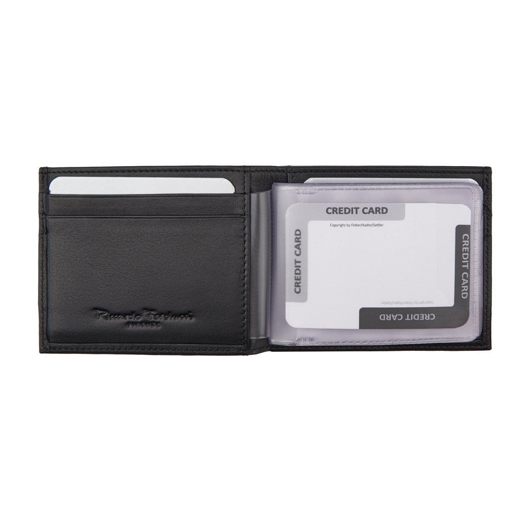 1 RFID Hacker Protection, 10 Kreditkartenfächer, 1 Klarsichteinlage – 10 Kreditkarten, 1 Notenfach, 2 Steckfächer