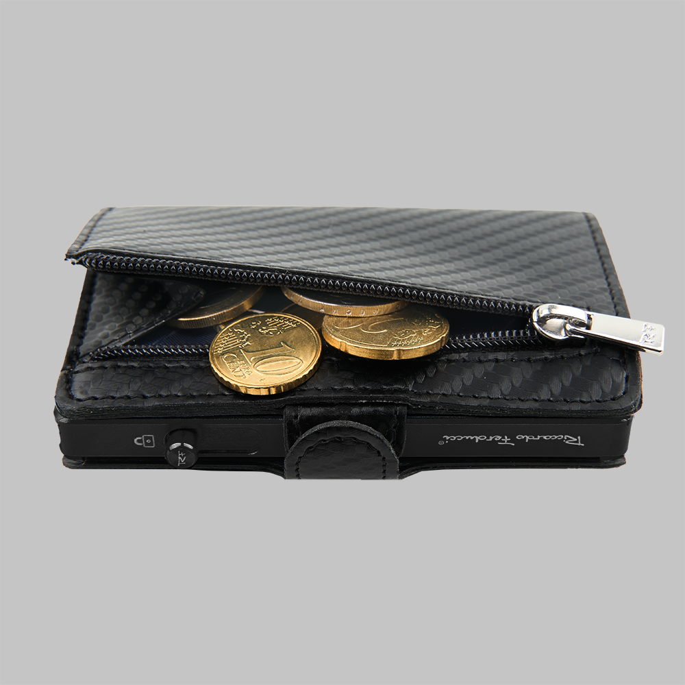 1 RFID Hacker Protection, 2 Kreditkartenfächer, 1 SafeBox Kartenhalter m. Lock-System 5-6 Karten, 1 Notenfach, extrem dünn, 1 Münzfach mit RV und Falte, 1 Sicherheitsverschl. m. Druckknopf, Mit innovativem Schließsystem für maximale Sicherheit Ihrer Karten.
