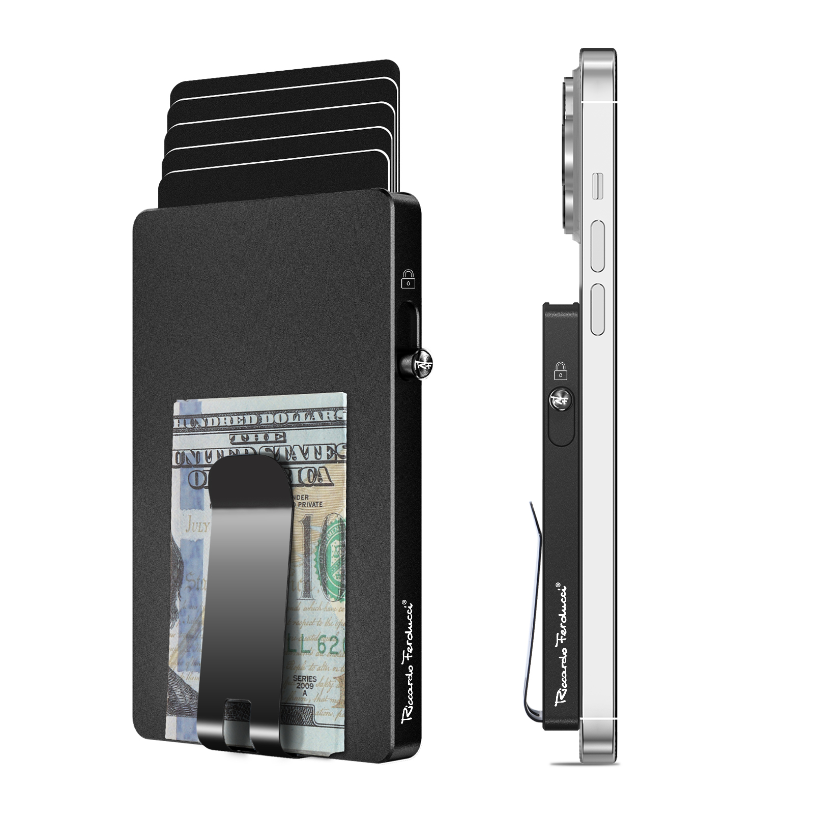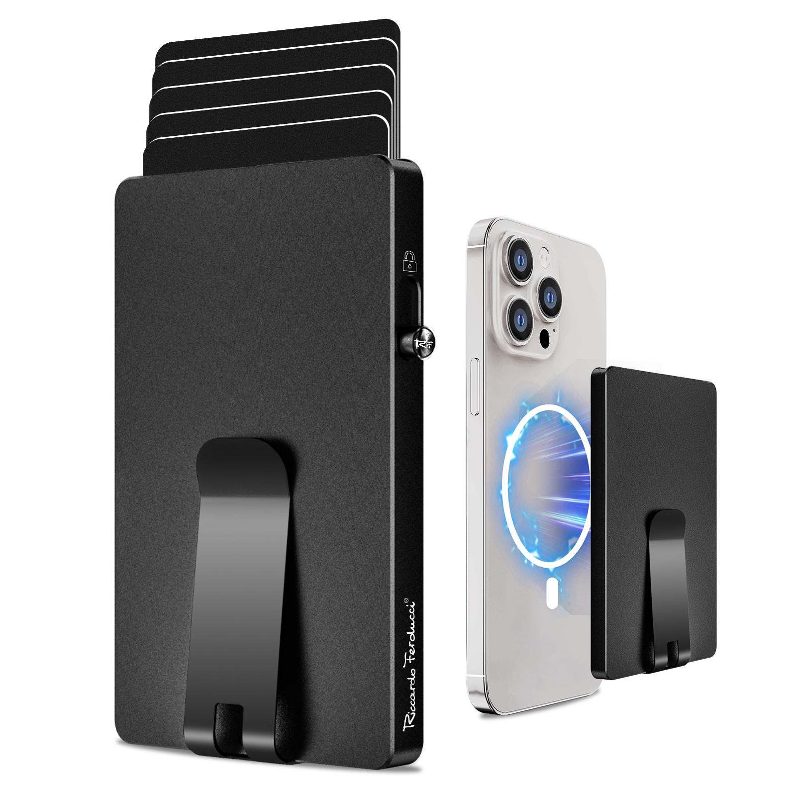 Dank des Magneten sind individuelle Farbkombinationen des Ferducci-Cardprotectors möglich. Der Kartenhalter bietet RFID-Schutz und eine einzigartige Schlossfunktion sowie einen Clip für Banknoten. Ideal für den täglichen Gebrauch. Erhältlich in 6 Farben, inklusive 2 Apple-Farben Blau und Natural Titanium.