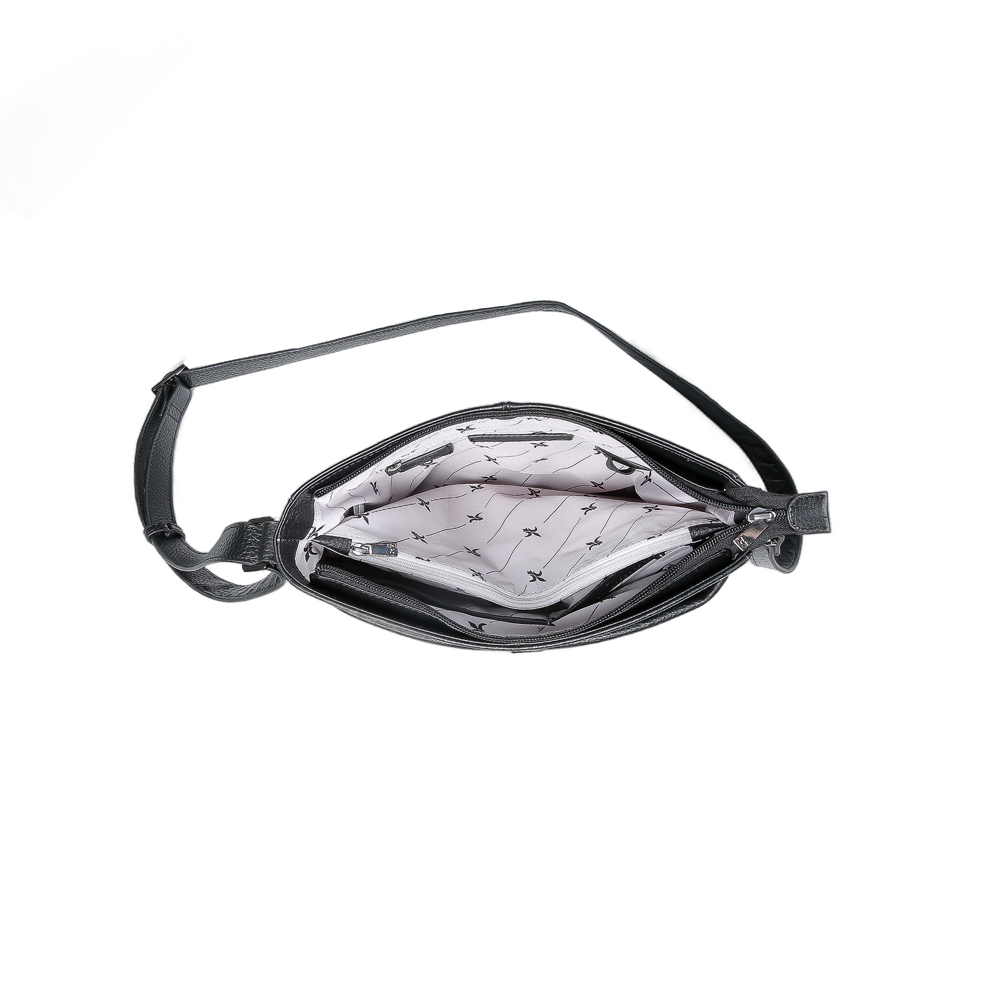 2 Haltegriffe, 1 Trageriemen abnehm- und verstellbar, 2 Hauptfächer mit Reißverschluss, 1 Reissverschlussfach, 1 LED-Licht Halterung, 1 Steckfach, 1 Handyfach, 1 Reissverschlussfach a. d. Vorderseite, 1 Reissverschlußfach a. d. Rückseite