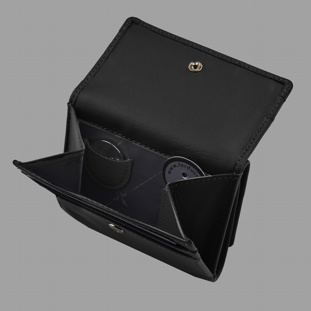 1 RFID Hacker Protection, 1 Steckfach, 5 Kreditkartenfächer, 1 Münzfach, 1 Fach für Einkaufswagen-Jeton, 1 Münze für den Einkaufswagen, 1 Schlüsselfach, 2 Notenfächer