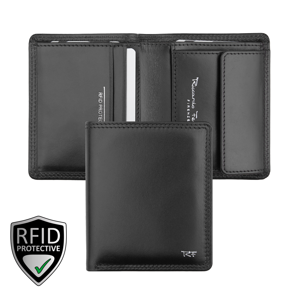 1 RFID Hacker Protection, 2 Kreditkartenfächer, 6 Kreditkartenfächer im Notenfach, 2 Steckfächer, 1 Münzfach, 1 Fach für den Schlüssel, 1 Fach für Einkaufswagen-Jeton inkl. Jeton
