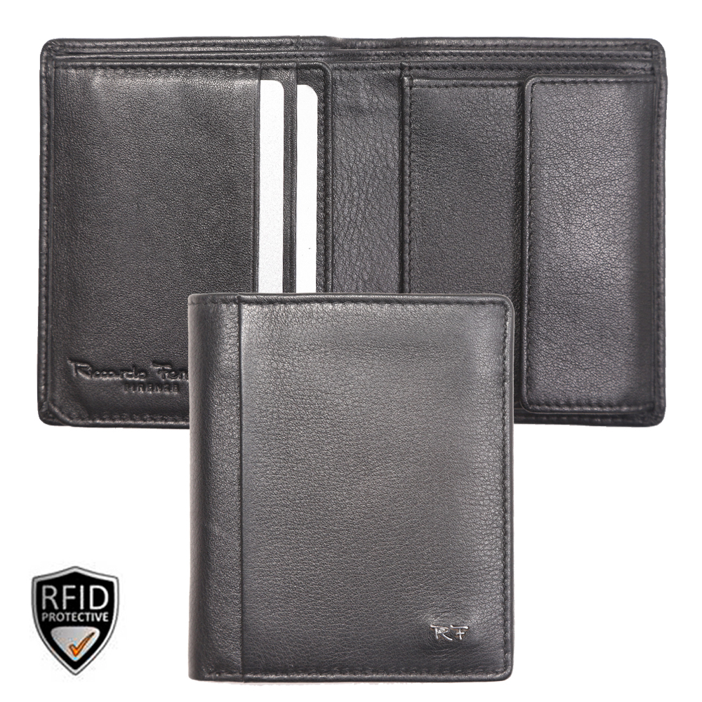 1 RFID Hacker Protection, 2 Notenfächer, 1 Münzfach, 4 Kreditkartenfächer, 2 Kreditkartenfächer im Notenfach, 2 Steckfächer, 1 Klarsichtfach, RFID – Radiofrequenz-Identifikation. In diesem Produkt wurde eine spezielle RFID-Schutzfolie eingearbeitet. Ihre Kredit- und Versicherungskarten sowie Personalausweise, sind somit vor Datendieben geschützt.