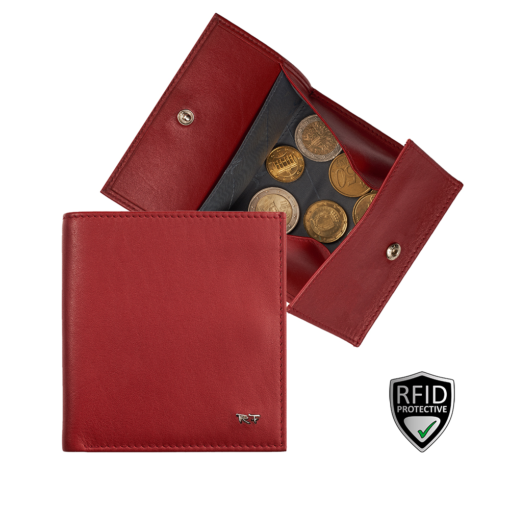 1 RFID Hacker Protection, 6 Kreditkartenfächer, 1 Münzfach mit Schüttrand, 1 Notenfach, 4 Steckfächer