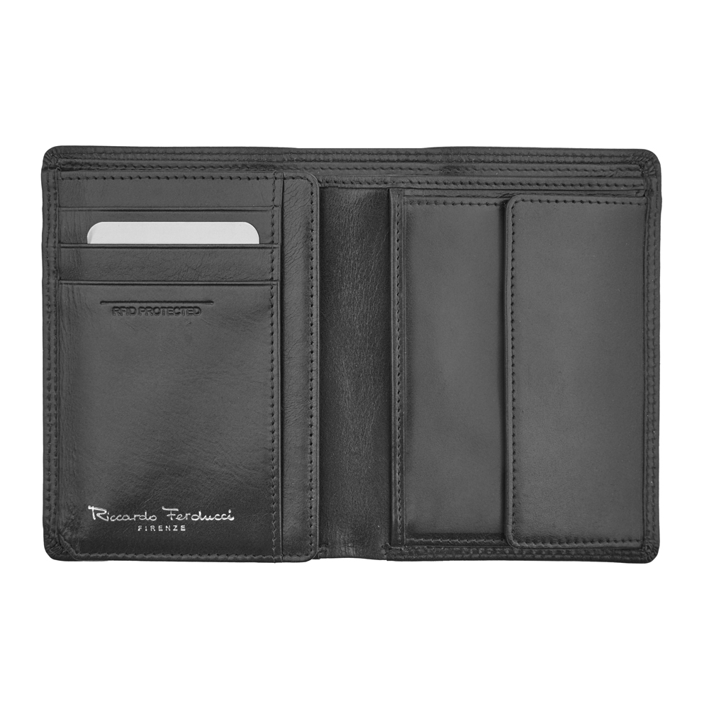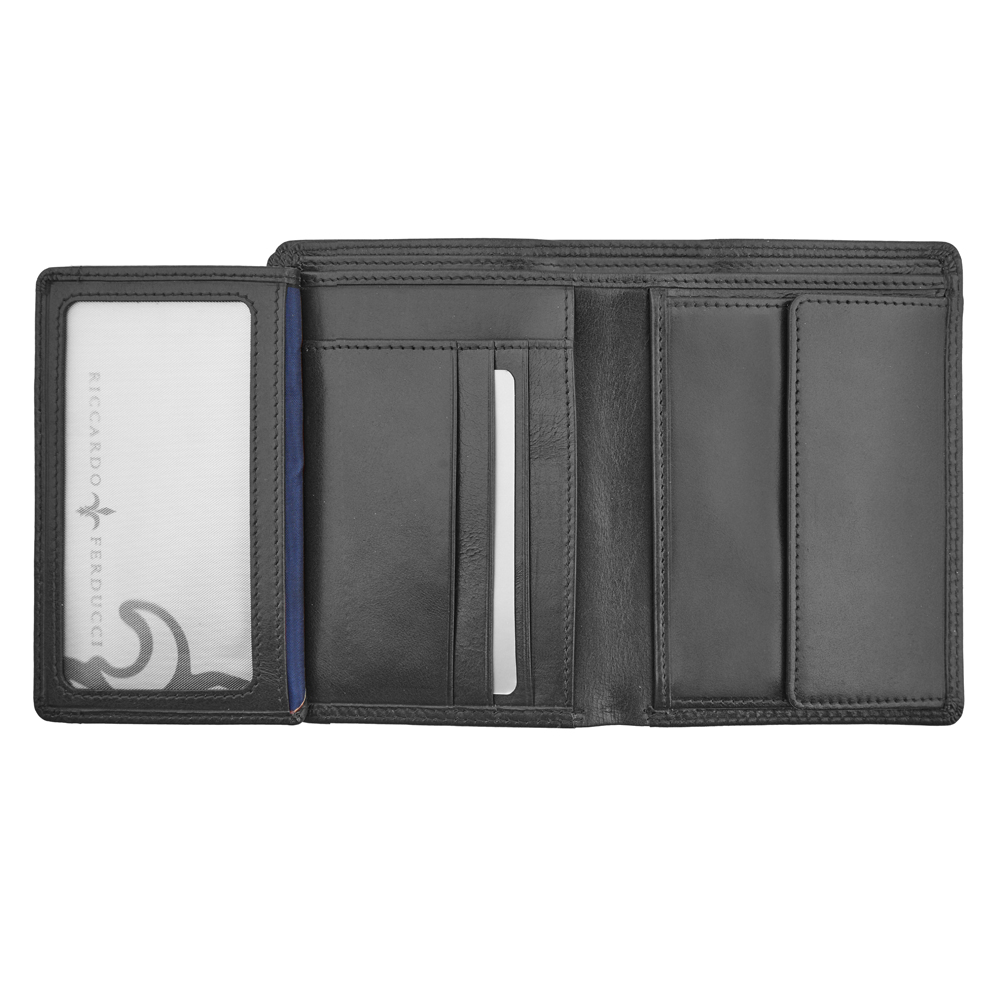 1 RFID Hacker Protection, 6 Kreditkartenfächer, 1 Fotofach, 4 Steckfächer, 1 Fach für Einkaufswagen-Jeton, 1 Fach für den Schlüssel, 2 Notenfächer, 4 Kreditkartenfächer im Notenfach